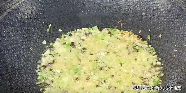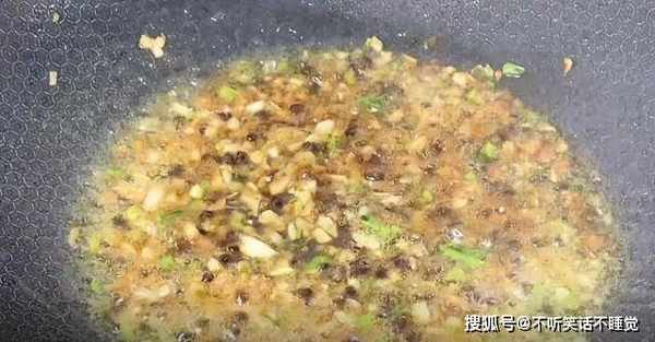 5、接着热锅,爆蒜香,如果喜欢吃辣,放点花椒,如果不喜欢吃辣,不用放。