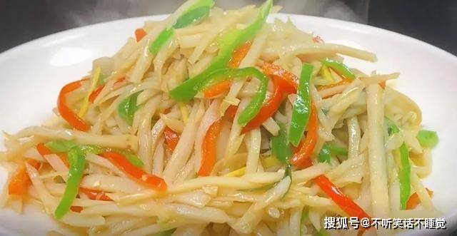 10、这道炒土豆丝,酸香开胃,爽口好吃,用来下饭很适合。