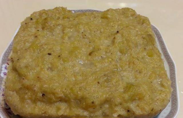 接着,地瓜泥和剩下的燕麦糊混合,搅拌均匀。
