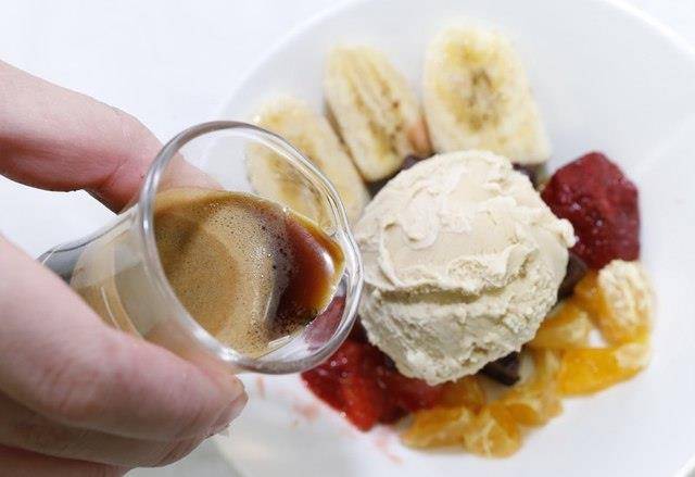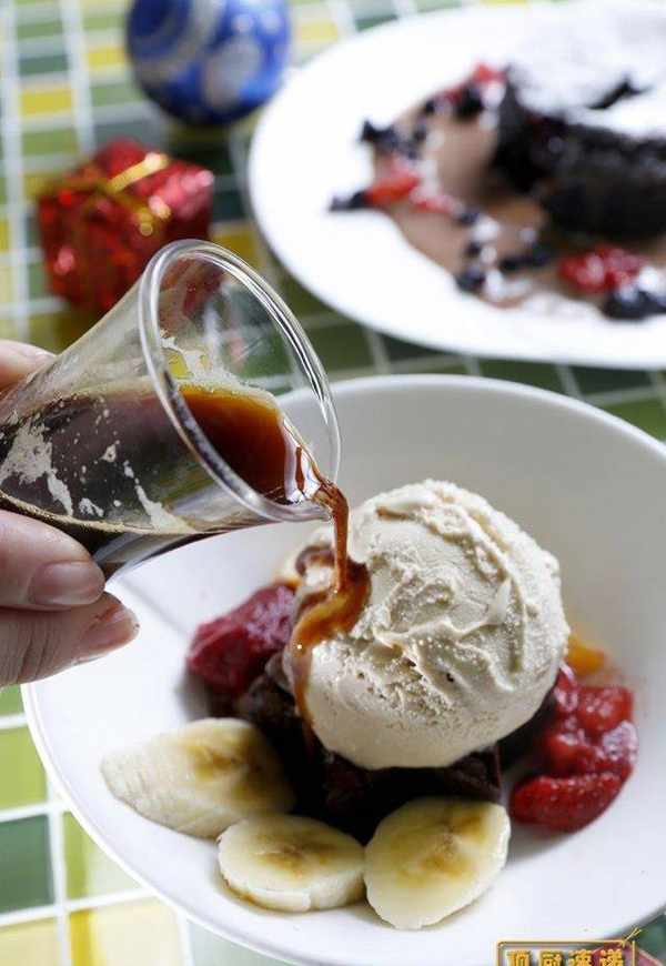 要吃的时候再淋上浓缩咖啡,即可享用热蛋糕遇上冰淇淋时冷热交加的口感。