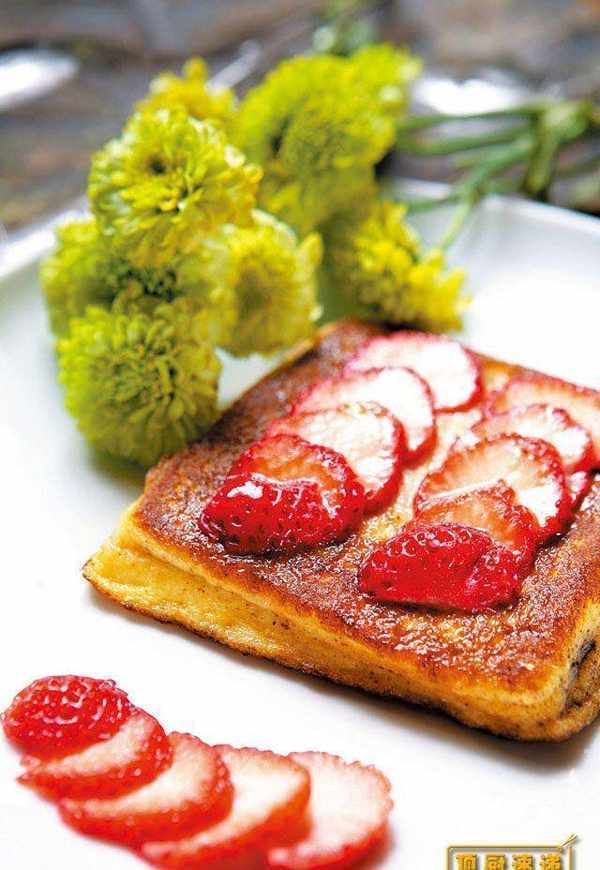 最后摆上切片草莓、淋上蜂蜜即完成。