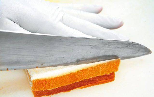 Tips:可以用餐巾纸轻轻按压土司,吸取表面的油分。
