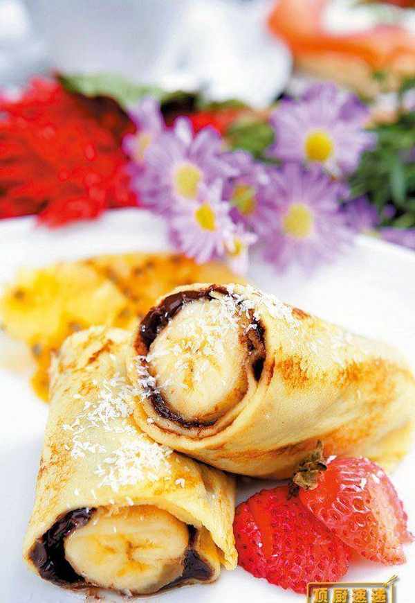 Tips:香蕉切段后,就能摆成直线,也比较好卷起。