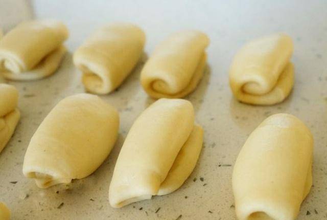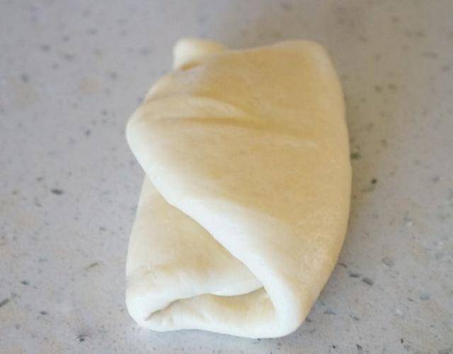 5.做第一次杆卷,像吐司杆卷那样,杆开折三折