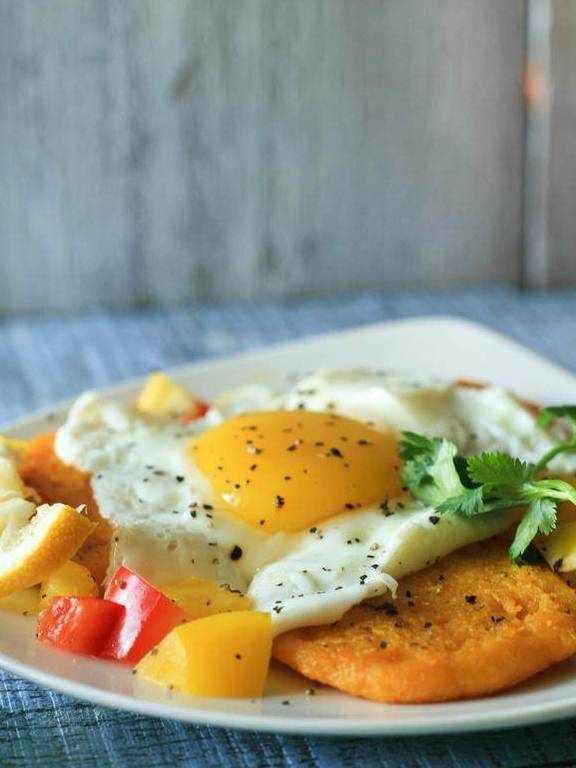 3.不追求外观,也可用勺子舀一勺面糊直接放到锅内稍压,更随意。也可烙成一张大饼。