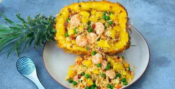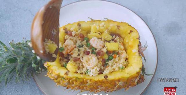 普通的蛋炒饭有了菠萝的加入,春夏之交的菠萝酸甜可口,正好中和了炒饭的油腻,瞬间升华成具有东南亚风味的菠萝饭。