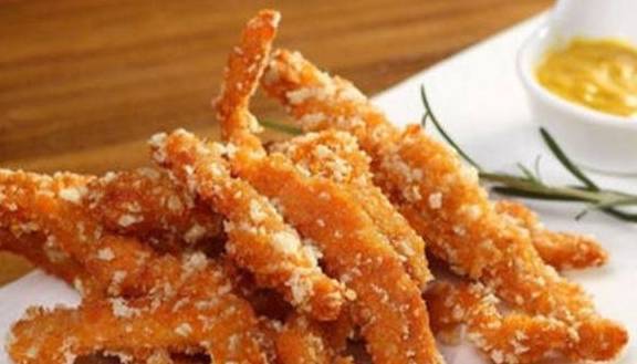 做法:把猪肉从洗干净,并切成条状。用各种调味料跟鸡蛋,一起把切好的肉条腌制15分钟左右,把腌好的肉条依次裹上面包糠。把裹好面包糠的肉条,放入炸锅内。200度,15分钟,香喷喷的猪柳就出锅了