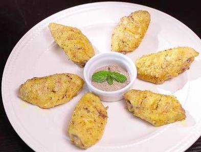 2、把酸奶用勺子平铺在鸡翅带皮的那一面。