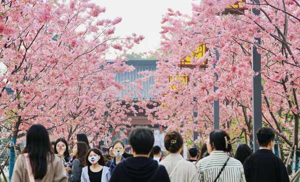 “樱花园不仅有丰富多样的樱花品种,还有古风古韵的唐朝建筑。”导游龚丽萍是一名地道的武汉人,从业20余年,见证了武汉众多景点日新月异的变化,她骄傲地向河南游客介绍,“樱花园玩法多多,每年都有新变化。目前早樱盛放,粉粉嫩嫩很适合拍照打卡,喜爱亭台楼阁、湖泊景石的游客可以重点游览曲院樱艳和樱花园西区。”