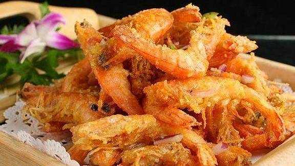 鲜虾剪虾枪、去虾腺备用在虾身上撒一层薄薄的淀粉锅烧热,倒少许油,蒜切末,放入油锅内小火炸制待蒜末变成金黄,立刻捞出炸过蒜的锅继续倒入适量的油,油温160度左右,逐个放入挂了薄淀粉的虾入锅炸至变色捞出炒锅烧热,放入椒盐炒香,再放入炸好的蒜蓉和青红椒圈,倒入虾,翻炒均匀即可出锅