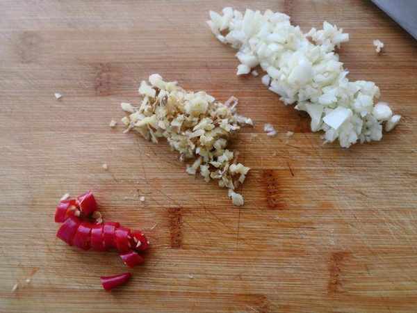 步骤三:姜蒜都要切末备用,然后和其他的调味料一起调成酱汁备用。