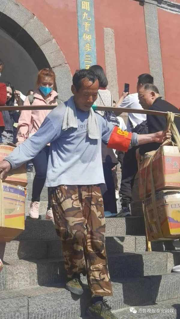 他告诉记者,目前泰山常年工作的挑山工数量在20多人,但高峰时能有50多人,“不是所有的人每天都干”。他们就像是泰山货运中最末端的毛细血管,将通过货索运上来的货物,有时是食材,有时是杂货,有时是建筑材料,甚至还有生活垃圾,运往它们该去的地方。