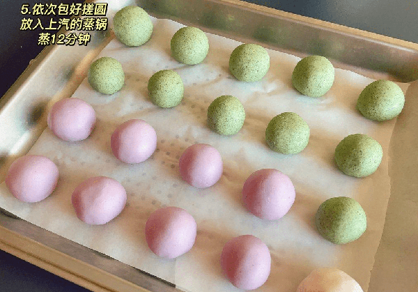 步骤八:依次包入馅料,搓圆,放入上汽的蒸锅蒸煮12分钟。