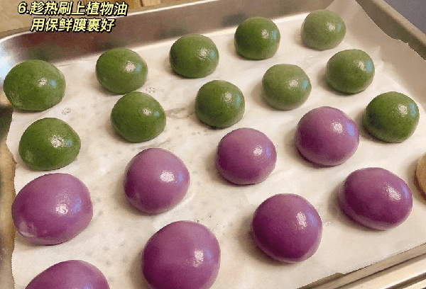 步骤九:趁热刷上食用油,包上保鲜膜,完成。