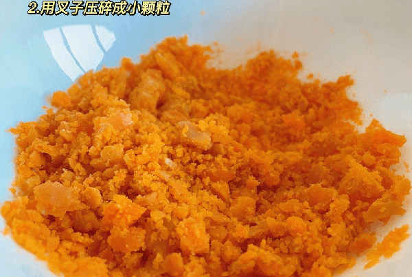 步骤二:取出用叉子碾碎至小颗粒状即可。