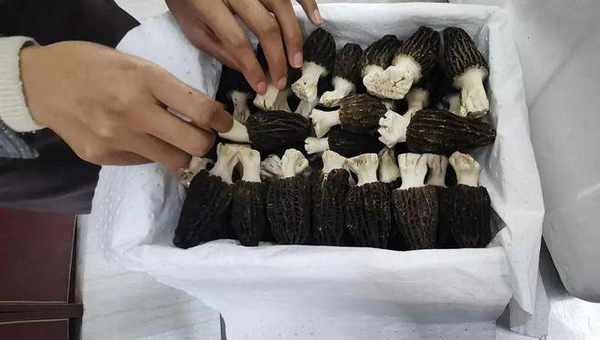 读本君进店的时候,她正在打包发往深圳的羊肚菌,泡沫箱里放好冰袋和吸水纸后,才一朵一朵地拿着羊肚菌放进去。
