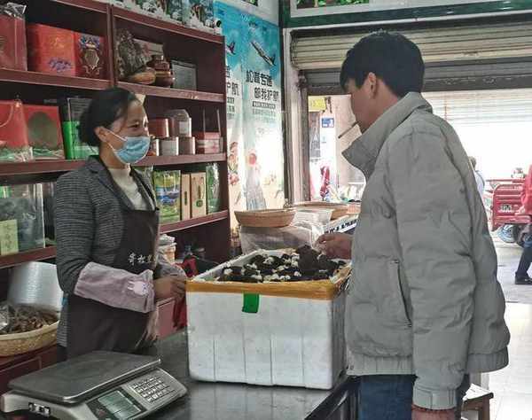 “年前这种人工种植的新鲜羊肚菌得180元一斤呢,现在气候暖和起来了,产量高了,价格也下来了,六七十基本就能买到了,干货的价格三百到六百不等,看质量和菇型......”和老板跟他来自鲁甸的妻子在象山市场开了一家云南土特产专卖店,他指着簸箕里的羊肚菌跟读本君说起了近年来的市场行情。