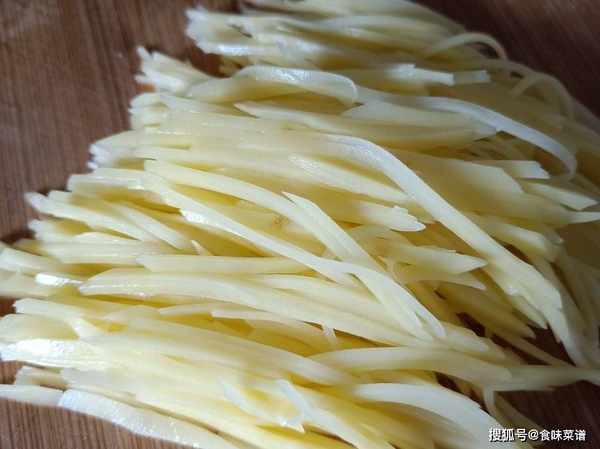 1、准备2-3个土豆丝,刮掉外皮,清洗干净,用擦丝器擦成细丝,装入盆中备用,注意!土豆丝不用冲洗,主要依靠它的淀粉成型,打入一个鸡蛋,搅拌一下。