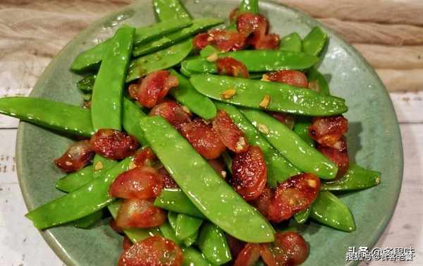 1、荷兰豆掐去两头洗干净,放入开水焯熟。大蒜切末,腊肠切片