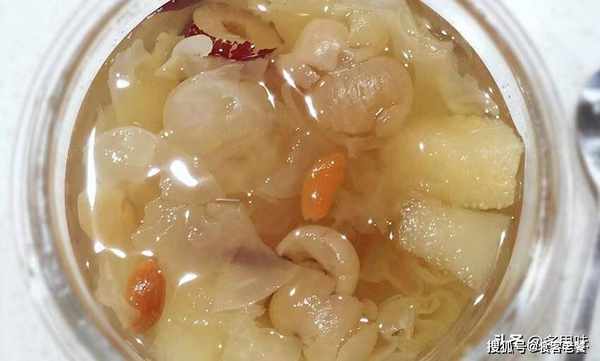 材料:银耳、梨、红枣、桂圆、枸杞、冰糖