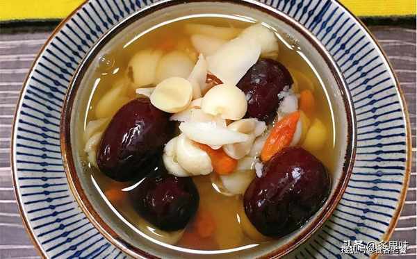 4、桂圆和枸杞不用煮太久,那样一点味道也没有了,枸杞还会破皮,用温水泡过的桂圆煮二分钟后,正好充分吸收了水分,吃起来脆脆的甜甜的,口感特别好。不过你不赞同鱼这种煮法,你可以按自己的喜好来决定桂圆和枸杞煮的时间长短问题。美味的四红汤就做好了