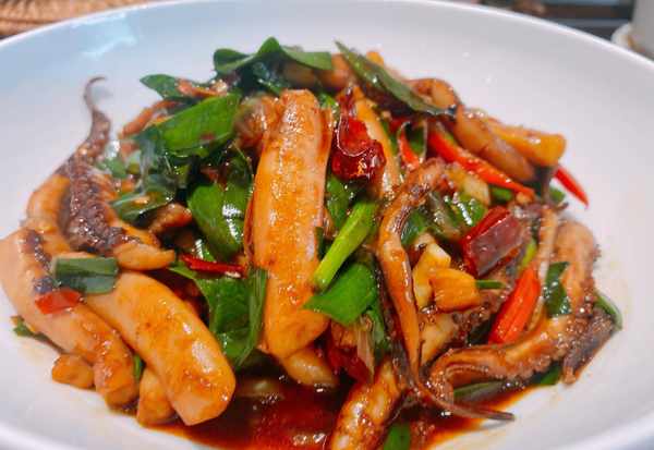 食材:韭菜、鱿鱼、葱姜蒜、豆瓣酱、蚝油、白糖、酱油、醋、料酒、食用油。