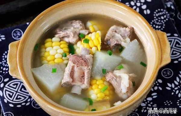 所需材料:排骨1条,冬瓜800克,玉米1根,姜3片,料酒1勺,清水1500克,盐适量,鸡精适量