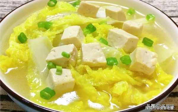 娃娃菜一颗,豆腐1小块,葱姜适量,盐鸡精少许