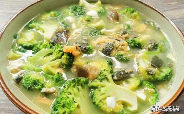西兰花1朵,皮蛋2个,咸鸭蛋1个,干贝10粒左右,蒜3瓣,姜2片,白胡椒粉1小勺