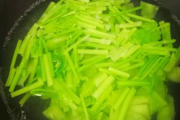 4、芹菜清洗切段,莴笋去皮切片,放入开水中焯熟,粉条用开水泡软;