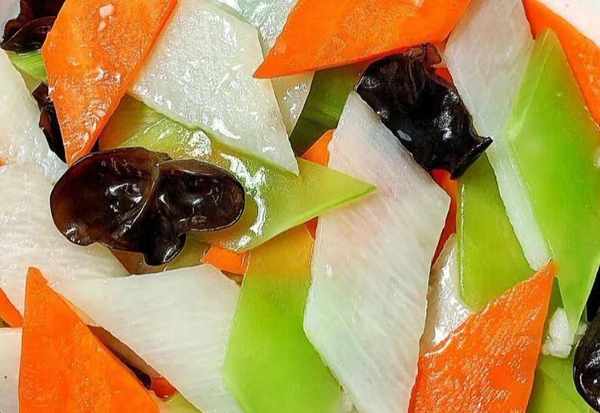 1、莴笋、山药、胡萝卜都用削皮刀削掉外皮,再清洗干净。先斜切成小段,再切成菱形薄片。