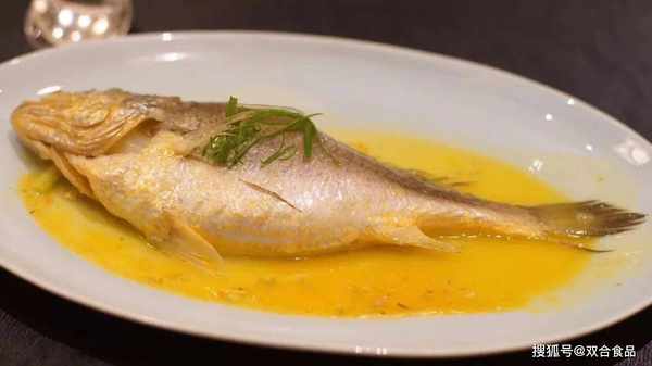 3、锅入蟹粉、心灵鸡汤、发制伏苓,加上料酒、白胡椒粉、盐、鸡精、白糖,小火炒10分钟左右,入冰箱冷藏成冻,装进裱花嘴,从鱼嘴巴挤进鱼腹,用虾胶封死鱼嘴巴,放盘里,加猪板油、动物油、葱、姜,入电蒸箱蒸20min,取下后过虑出料汁;将黄鱼摆盘,淋浓缩汁,装点香葱段就可以。砂锅海叁肥肠制做:1、发制乌参清洗控干,打花刀发展4公分的段,入大骨汤煨10min,熄火浸在汤里预留。