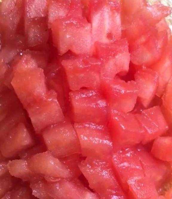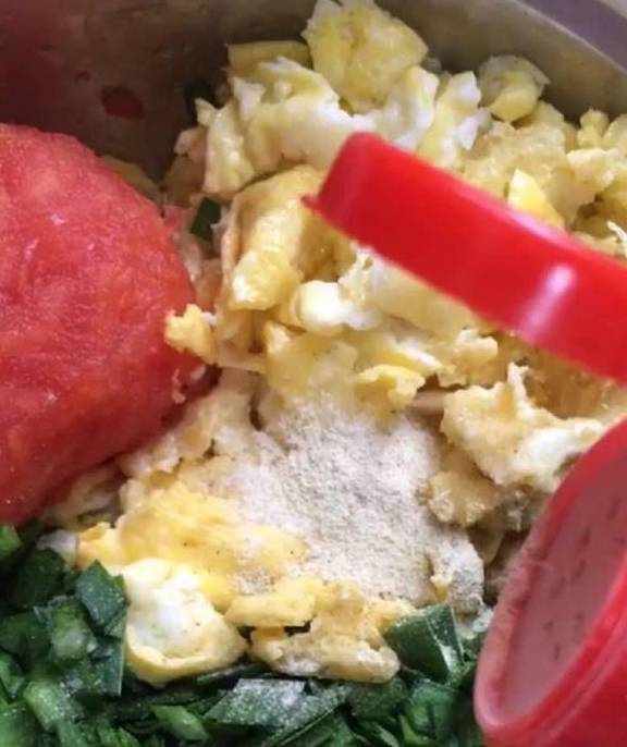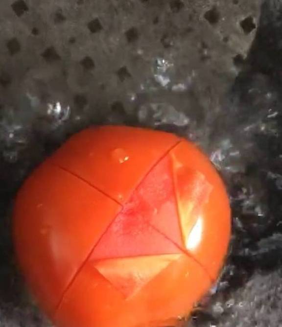 第三步:准备馅,锅里放水放入西红柿,过下热下去皮,挤出多余的水分,切小丁备用
