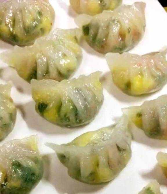 第六步:面团擀开,包成饺子,因为加了猪油,不好包的,所以先准备馅料,再来和面,温热的时候很好包,边上捏紧就可以了