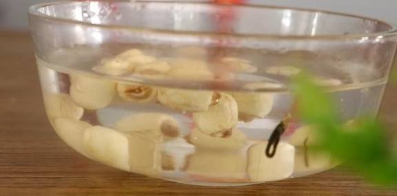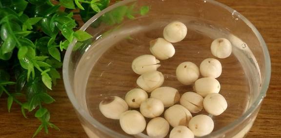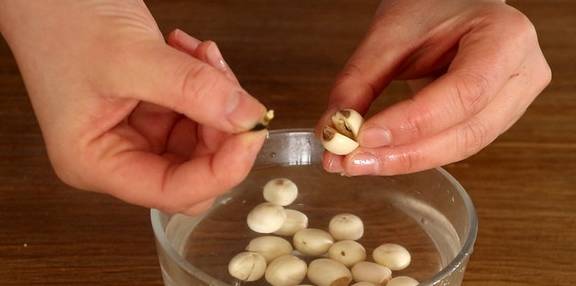 蒸米的过程,我们把莲子中间的莲心儿去掉备用。