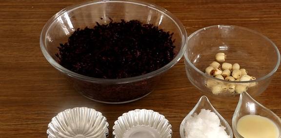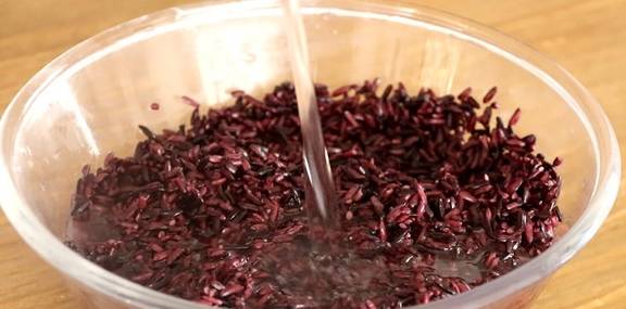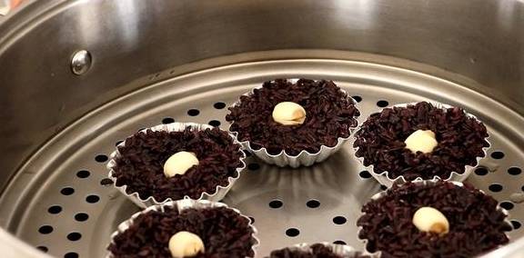 把泡好的黑米用电饭锅煮,或者蒸锅加水蒸熟。(用电饭锅煮也可以不泡。)