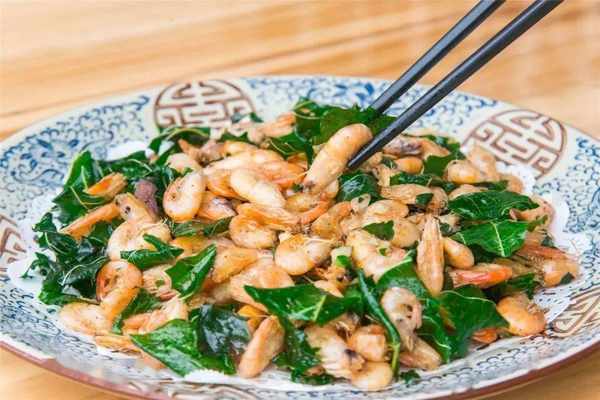 稍老的桑叶则可用作桑叶焗虾,因为它的桑叶味更足。而虾方面则选择相对其他虾体型更小的河虾,一方面河虾鲜味更足且容易入味,另一方面小只的河虾可连壳炒熟,令口感更加丰富。