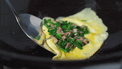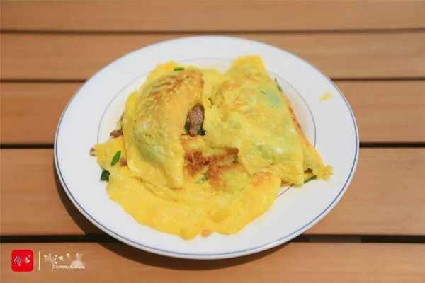 先将藠菜中段切成粒,再与剁碎的猪肉一起炒熟备用。鸡蛋打入碗中,搅拌均匀。待铁锅烧热后,先放油,再放2勺鸡蛋液,轻轻转动炒锅将鸡蛋液摊成饼状。待鸡蛋7成熟左右,将藠菜猪肉作为馅料放在鸡蛋中间,再用锅铲轻轻掀起一边的鸡蛋,对折包裹住馅料,形成“蛋角”的形状,待鸡蛋煎得金黄,就可以出锅啦。