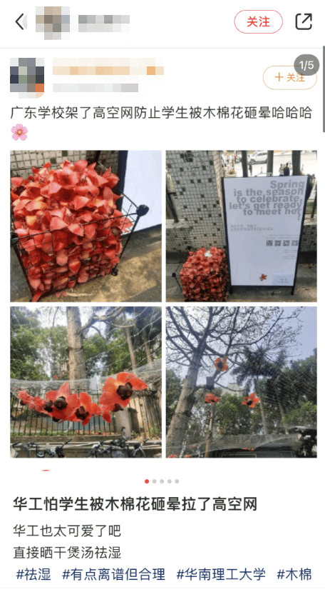 为了防止学生被掉落的木棉花“砸晕”
