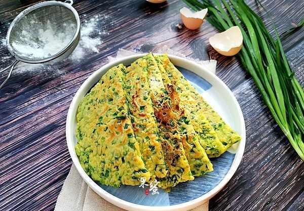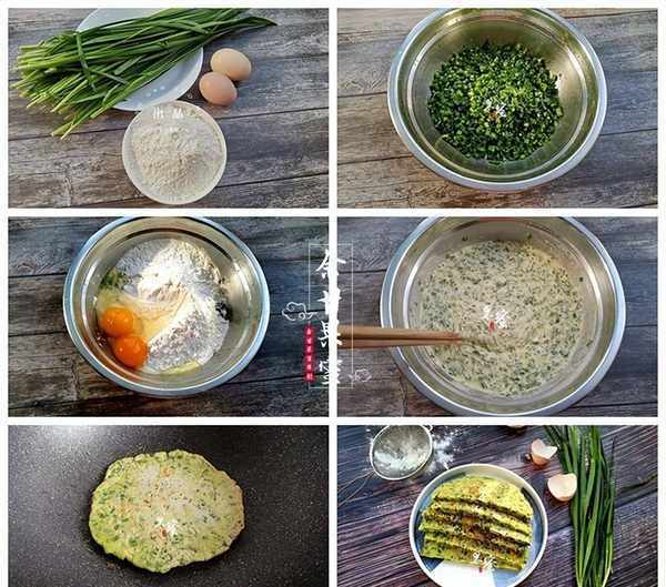 原料:韭菜、鸡蛋、面粉、水、精盐、食用油。