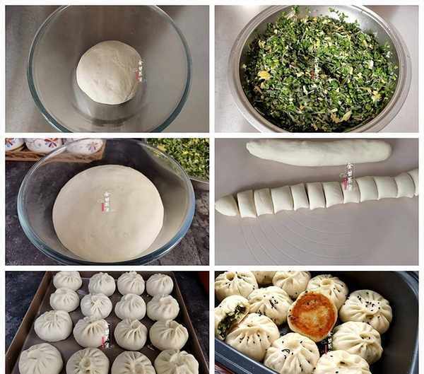 韭菜炒包子:面粉500克,水255克,酵母4克,白糖8克;韭菜400克,鸡蛋2个,粉丝100克,精盐4茶匙,食用油适量。