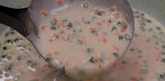 原料:鸡蛋、面粉、大葱、胡萝卜、水、盐。