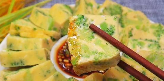 西兰花糕沥干水分后,放凉后切成小块,蘸着酱汁吃。味道鲜美温和,非常适合全家人一起吃。
