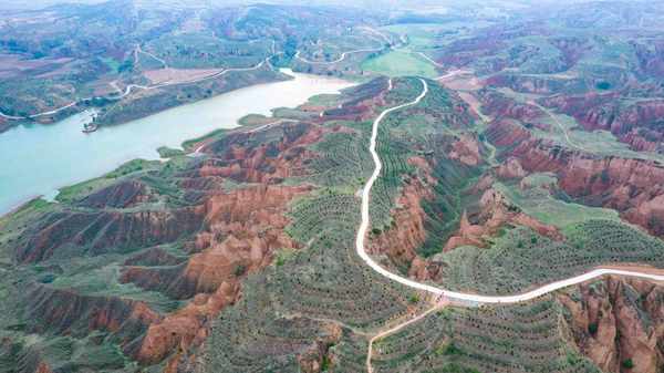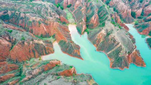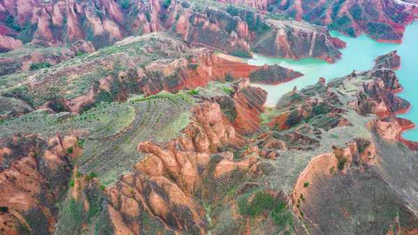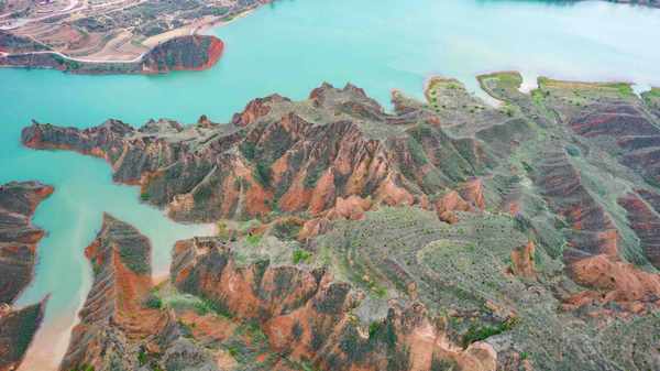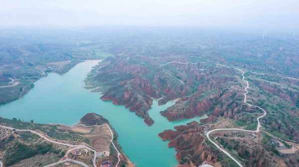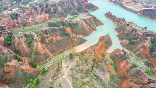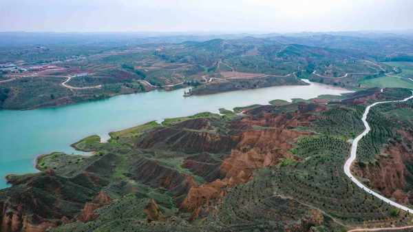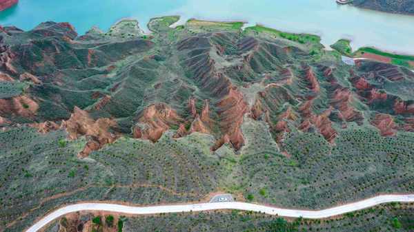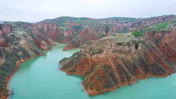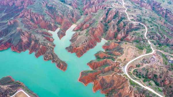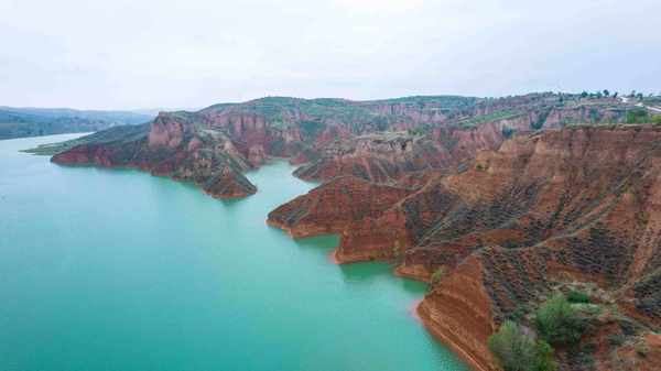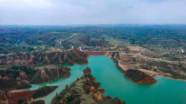 千沟万壑的黄土高坡虽然看起来有些苍茫,但却并不荒芜。因为在山体上生长着许多的植被,这些绿意盎然草木的为这方土地增添了许多生机。其实,麻黄梁黄土地质公园里还藏着一处绝美的山水风光。碧波荡漾的湖水绵延在险峻陡峭的峰峦中,若是从航拍视角看,宛若一块翡翠。漫步在湖畔,恍惚间竟有种置身海边的错觉。当蓝天遇上了碧水,当峰林遇上了湖泊,便会形成一幅绝美的画卷。