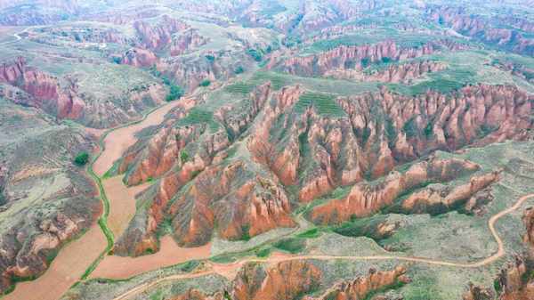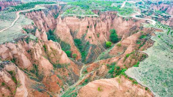 麻黄梁黄土地质公园地处于黄土高原与毛乌素沙地间,也正是因此,在这里可以看到黄土地质遗迹及沙漠地貌两种不同的景色。 走进公园后,首先看到的便是那巍然屹立的黄土峰林。抬头望去,沟壑纵横的峰峦连绵不绝,形态各异,而沟壑中裸露的棕红土质则格外的引人注目。