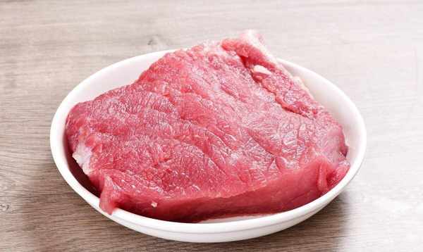 2.锅内倒入清水,大火烧开,加入瘦肉块。片刻后,取出肉。