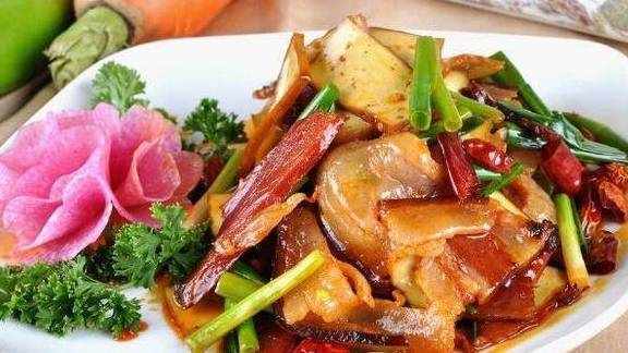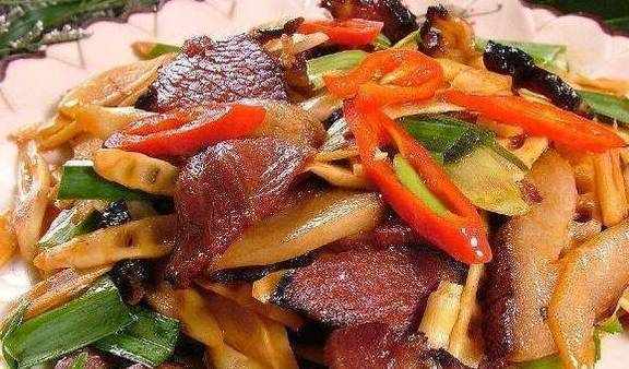 湖南腊肉200克、红葱头50克、红椒1只、生姜、葱各10克调味料:花生油30克、盐5克、味精10克、老抽王5克、湿面粉适量、麻油5克、清汤150克制作过程:湖南腊肉洗净切厚片红葱去皮切块红椒切片姜切片葱切段2、烧锅下油放入姜、腊肉煸炒至出香味3、加入清汤、味精、老抽王、红椒、葱段用小火烧熟入味时用湿生粉打芡淋入麻油入碟即香芋腊肉煲[原料/调料]腊肉250克、香芋100克、葱各10克清水500克、盐20克、味精10克、白糖5克、绍酒10克