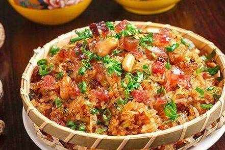 热锅内加入橄榄油加热2放入切成薄片蒜苗白色部分炒香3.续放入切成薄片腊肉炒腊肉几乎熟透4.放入冷饭快炒炒至腊肉滋味渗入白饭洒上蒜苗青色部分再拌炒30秒即起锅。快手又试作了腊肉乾面做法与腊肉饭相同<只把饭改成烫熟面条即也美味呀^^(当也要配"小米酒")。面条士东市场买生鲜面条
