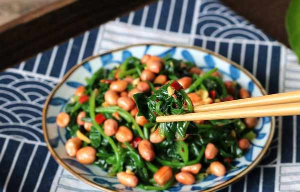 菠菜的吃法很多,大蒜炒或者鸡蛋炒,猪肝煲汤,凉菜特别好吃。在这些菜谱中,龙宝最喜欢用花生和菠菜做一道几分钟就做好的凉拌菜,非常省事。然而,它也是一种花生和菠菜混合的制剂。花生米要先炒熟,放凉后拌入菠菜,这样菠菜吃起来脆嫩,花生米脆。今天龙宝就给大家分享一下花生和菠菜的搭配方法。需要准备的材料有:菠菜一把,花生米适量,蒜头4瓣,辣椒酱适量,食用油适量,盐适量,调味酱料:酱油2汤匙,一茶匙白糖和1汤匙香醋醋。