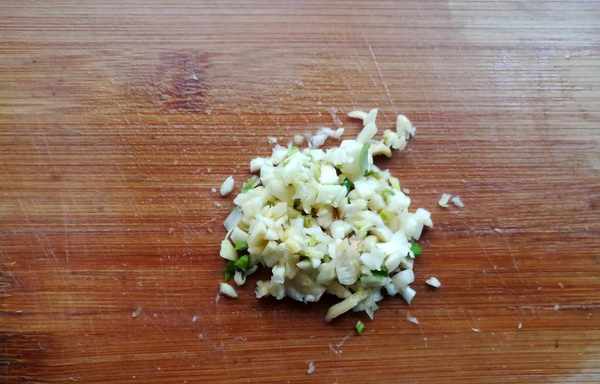 第二步:大蒜去皮后,先切成薄片,然后将大蒜剁碎备用。
